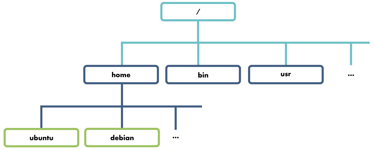 În Linux, începutul acestei ierarhii este /, directorul rădăcină al sistemului de fișiere (root directory).